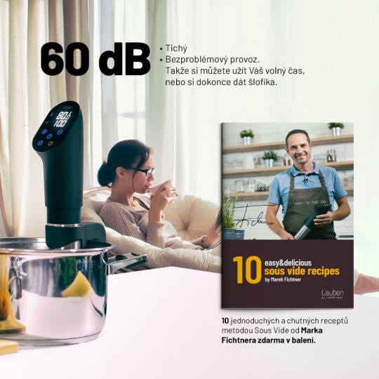 Chcete si vychutnať vynikajúce, zdravé jedlo, ktorého príprava vám nezaberie celý popoludnie? Chcete si doma pripraviť mäso, čo sa bude rozpadávať na jazyku, ale pritom nezničí objem a vždy si zachová svoj tvar a farbu? Nemusíte nutne chodiť do reštaurácie. Lauben Smart Sous Vide je ideálnym pomocníkom do kuchyne pre každého, kto chce ušetriť hodiny strávené pri sporáku, a predsa získať z ingrediencií maximum. Vďaka metóde varenia sous vide si pripravené jedlá zachovajú všetky chute, vône a živiny, o ktoré nechcete pri varení prísť. Varič jednoducho zapnete a ponoríte do hrnca s potravinami pripravenými vo špeciálnych zip lock vakoch, ktoré sú súčasťou balenia. O ostatné sa postará Lauben Smart Sous Vide, vy si len vychutnáte famózny výsledok.