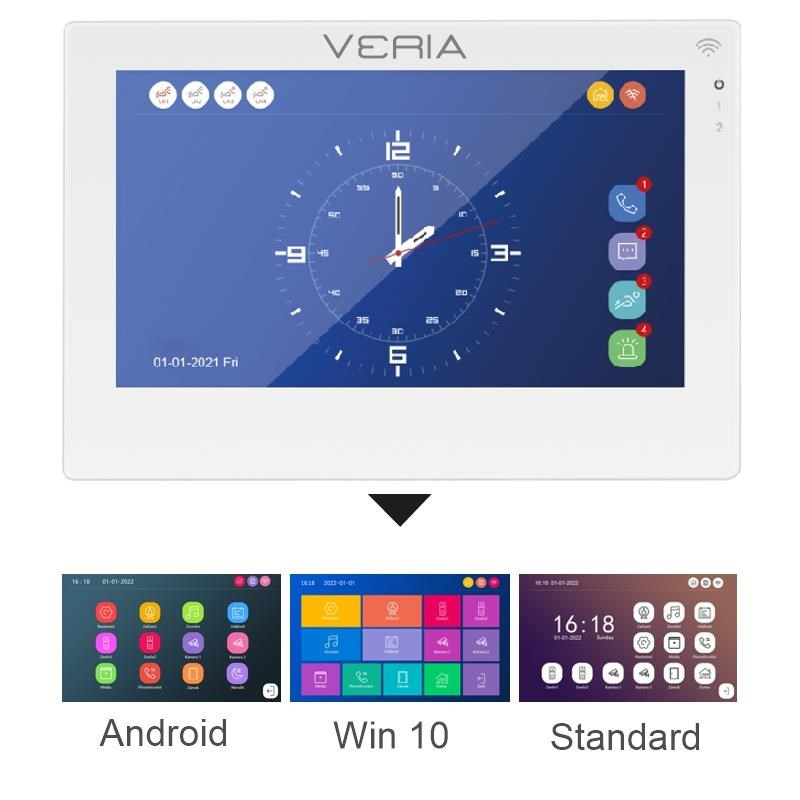 Monitor VERIA 3001-W je plne dotykový farebný LCD panel a ponúka užívateľsky jednoduché ovládanie a nastavovanie. Umožňuje meniť vzhľad menu na štýly android alebo Windows, v režime spánku môže zobrazovať hodiny, alebo zobrazovať snímky uložené na SD karte a tak vám spríjemniť čas spomienkami.