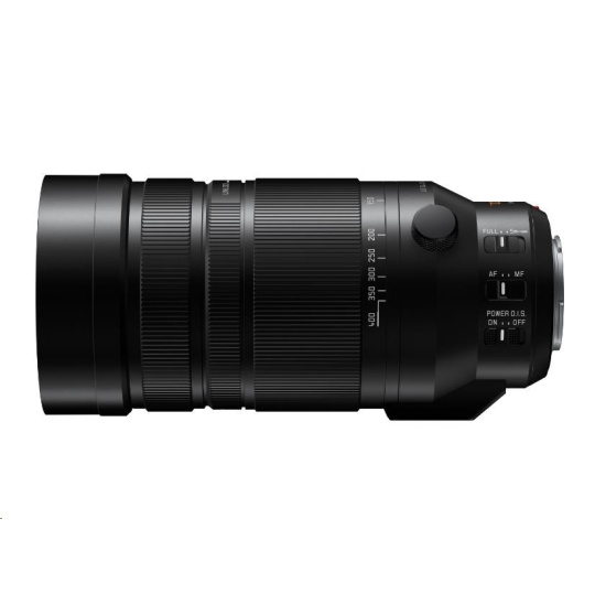 - LEICA DG VARIO-ELMAR 100-400mm / F4.0-6.3 II ASPH. / POWER O.I.S. - 9 diaphragm blades aperture F4.0 – F22 - Closest Focusing Distance 130cm (Full) / 500cm (Limit) - Maximum Magnification 0.25x / 0.5x (35mm equivalent) - Teleconvertor lens DMW-TC14 (1,4x magnification), DMW-TC20 (2.0x magnification) compatible - Fully optimized for video, dynamic aperture, quiet operation, smooth focus tracking - Focus Breathing Suppression, Linear/Non-linear focus ring control - Resistance to weather conditions, rain, dust, frost -10°C, Nano Surface Coating - 20 elements in 13 groups (1x Aspherical ED, 1x UED, 2x ED lens) - Dimensions – max. diameter 83mm, length 171.5mm, weight 985g - Filter Size 72mm.