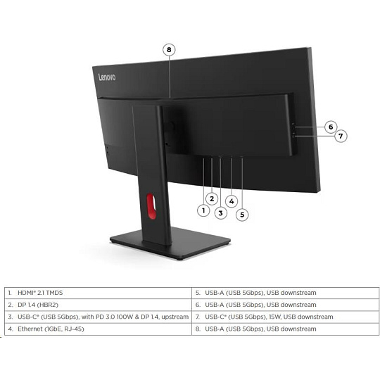 LENOVO LCD T34WD-40 - 34",VA,matný,21:9,3440x1440,120Hz,4ms,300cd,3000:1,HDMI,DP,USB-C,PD100W,RJ45,USBhub,VESA