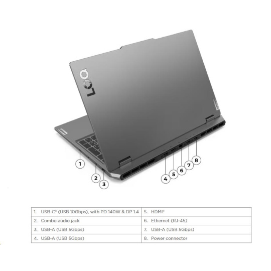 1x USB-C® (USB 10Gbps / USB 3.2 Gen 2), with Lenovo® PD 140W and DisplayPort™ 1.4