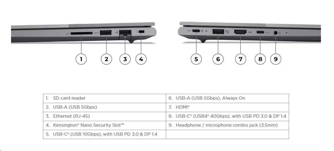 1x USB-C® (USB 10Gbps / USB 3.2 Gen 2), with USB PD 3.0 and DisplayPort™ 1.4