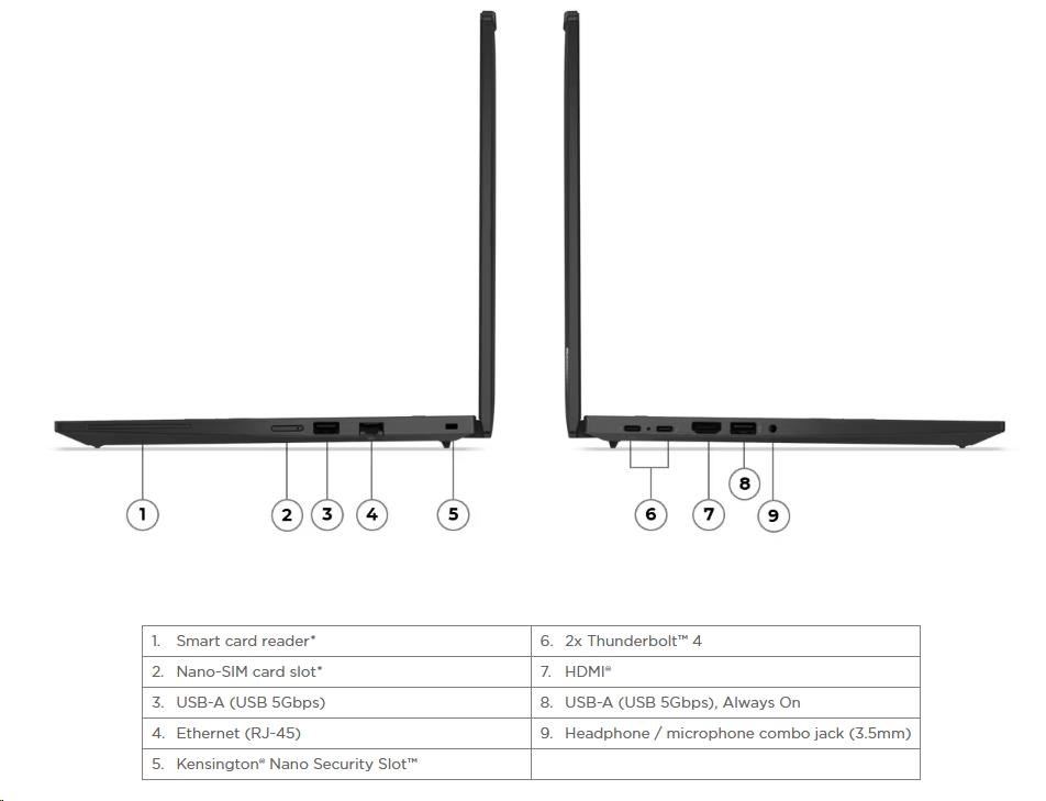 2x USB-C® (Thunderbolt™ 4 / USB4® 40Gbps), with USB PD 3.0 and DisplayPort™ 2.1