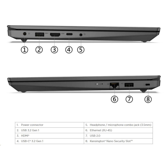 | Standartné porty | 1x Ethernet (RJ-45) 1x HDMI® 1.4b 1x Headphone / microphone combo jack (3.5mm) 1x Power connector 1x USB 2.0 1x USB 3.2 Gen 1 1x USB-C® 3.2 Gen 1 (support data transfer, Power Delivery 3.0 and DisplayPort™ 1.2) |