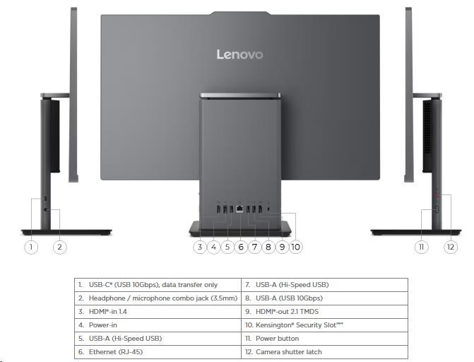 | Zadné porty | 1x USB-A (USB 10Gbps / USB 3.2 Gen 2) 2x USB-A (Hi-Speed USB / USB 2.0) 1x HDMI®-in 1.4 1x HDMI®-out 2.1 TMDS 1x Ethernet (RJ-45) 1x power connector |