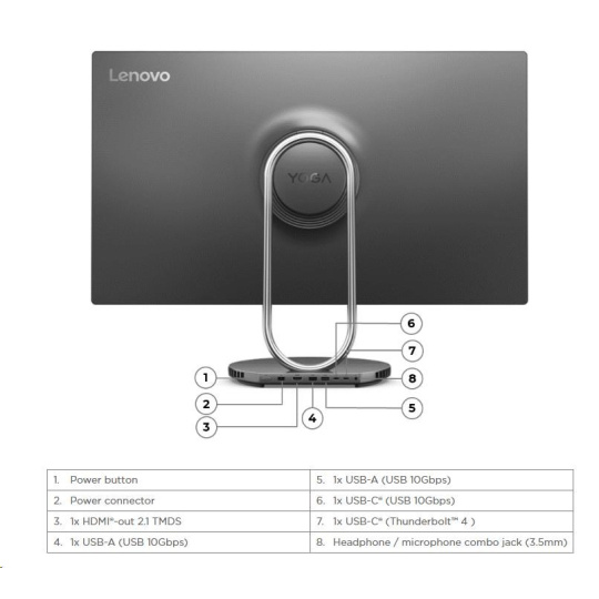 | Standartné porty | 1x Thunderbolt™ 4 1x USB-C® (USB 10Gbps / 3.2 Gen 2) 2x USB-A (USB 10Gbps / USB 3.2 Gen 2) 1x HDMI®-out 2.1 TMDS 1x headphone / microphone combo jack (3.5mm) 1x power connector |