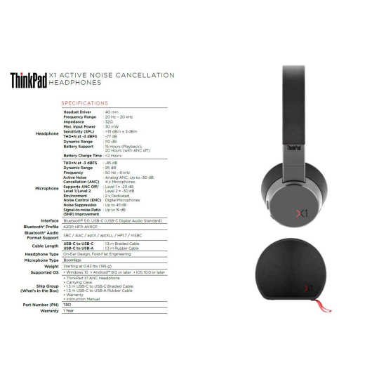 LENOVO sluchadlá ThinkPad X1 Active Noise Cancellation Headphone - bezdrôtové sluchadlá,mic.,potlačení šumu (ENC),ANC