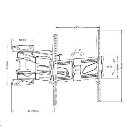 Levný otočný držiak LCD Fiber Mounts DELTA781 Cenovo výhodný spoľahlivý a bezpečný držiak na TV 26-60", otočný, sklopný, dĺžkovo nastaviteľný Potrebujete zaviesť televíziu na spoľahlivý a bezpečný držiak a nechcete pritom veľmi míňať? Môžeme Vám odporučiť nástenný TV držiak Fiber Mounts DELTA781. Vysoká nosnosť 45kg, dve veľmi pevné ramená, zabezpečenie televízora proti vysadeniu, väčšia installačná plocha pre ukotvenie do steny. Držiak ponúka pohodlné polohovanie televízora - otáčanie na obe strany, naklonenie obrazovky mierne nahor alebo nadol, nastavenie vzdialenosti od steny podľa potreby. Výsuv obrazovky prebieha v osi uchytenia, preto je držiak vhodný na ukotvenie nielen na stenu, ale aj do pripravených výklenkov alebo do obývacích stien. Ak sa Vám nepodarila montáž presne do roviny a obrazovka nie je po zavese vo vodováhe, nie je potrebné vykonať novú inštaláciu, ľahko upravíte rovinu televízie bez nutnosti reinstalácie. Nástenný úchyt aj ramená držiaku sú opatrené dizajnovými krytkami, pod ktorými môžete skryte viesť všetku kabeláž. Farebné prevedenie je čierne, na držiak poskytujeme predĺženú záruku na 3 roky. Levný, bezpečný a spoľahlivý držiak na všetky TV s hmotnosťou do 45kg, podpora VESA 100x100 až 400x400, otočný do strán, dĺžkovo nastaviteľný, sklopný, TOP kvalita za skvelú cenu - držiak Fiber Mounts DELTA781 Vynikajúci televízny držiak za skvelú cenu Fiber Mounts DELTA781 - otáčanie do strán, dĺžkové nastavenie, náklon, korekcia roviny, vedenie kabeláže, spoľahlivosť a bezpečnosť. Technické údaje: nosnosť 45kg podpora VESA štandardu 100x100 až 400x400 odporúčame na televízory s uhlopriečkou 26" až 60" vhodný na všetky typy televízorov - LCD, LED, OLED, QLED, plazma, 3D, Smart, prehnuté vhodný na všetky značky televízorov - Samsung, LG, SONY, Panasonic, ECG, GoGEN, Hisense, Changhong, Hyundai, Orava, Philips ... nastaviteľná vzdialenosť od steny 57mm až 470mm otáčanie TV na obe strany +/- 75° nakoľnenie obrazovky hore aj dole +2° až -12° korekcia roviny obrazovky +/- 3° inštalačná plocha na stenu o rozmeroch 160mm x 235mm (šírka x výška) zabezpečenie televízora proti vysadeniu integrovaná vodováha pre uľahčenie montáže veľmi jednoduché polohovanie bezpečná a spoľahlivá oceľová konštrukcia dizajnové kryty ramien pre skryté vedenie všetkej kabeláže súčasť balenia je univerzálna inštalačná sada (šrouby, vruty, hmoždinky, podložky) farebné prevedenie čierne predĺžená záruka 3 roky Spoľahlivý držiak na všetky značky TV - Sony, Samsung, Panasonic, GoGEN, Hyundai, Panasonic, Sencor, Philips, Changhong, Hisense, Hitachi - držiak TV Fiber Mounts DELTA781 Držiak podporuje VESA štandardy pre zavešenie televízorov: VESA 100x100 VESA 200x100 a 100x200 VESA 200x200 VESA 300x100 a 100x300 VESA 300x200 a 200x300 VESA 300x300 VESA 400x100 a 100x400 VESA 400x200 a 200x400 VESA 400x300 a 300x400 VESA 400x400 Držiak Tv Fiber Mounts DELTA781 je vhodný na zavešenie všetkých typov, značiek a veľkostí TV, ktoré majú hmotnosť do 45kg a ktoré podporujú niektorý z uvedených VESA štandardov. Na veľkosti televízora priamo nezáleží, môžete zaviesť aj väčšie televízory za splnenia vyššie uvedených podmienok.