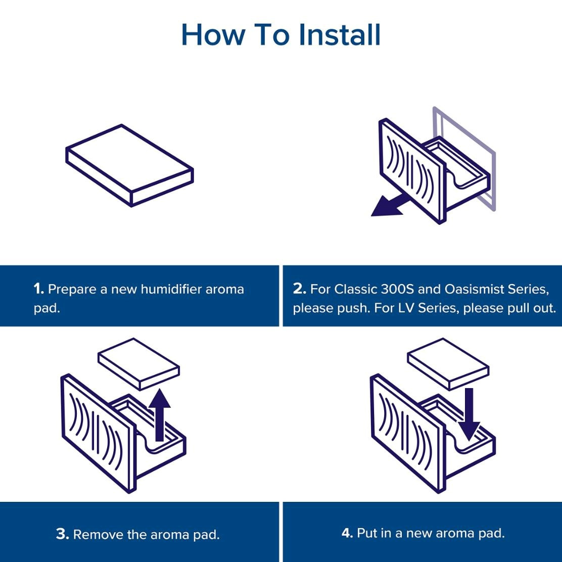Vankúšiky na použitie esenciálnych olejov na aromaterapiu so zvlhčovačmi vzduchu Levoit. Odporúčame meniť aromatické vankúšiky v závislosti od frekvencie používania. Do zásobníka na vodu ani do základnej komory nepridávajte esenciálne oleje ani iné vonné látky. Esenciálne oleje pridávajte len do aromatických vankúšikov.