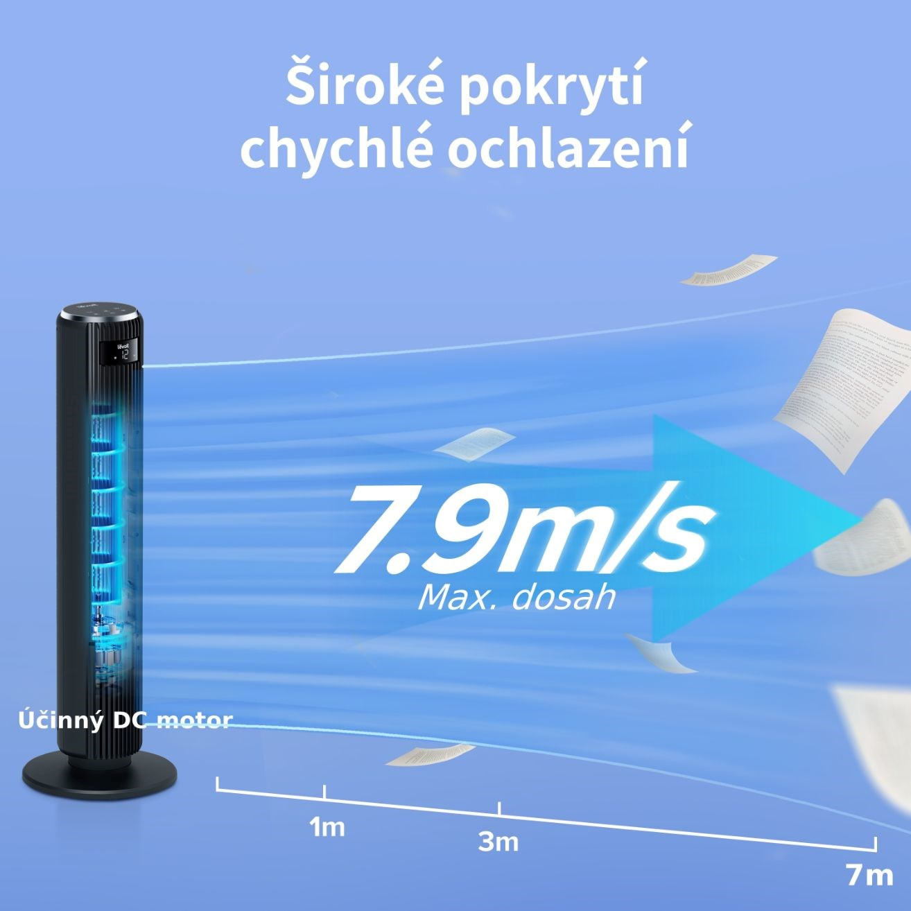 - Rýchlosť vzduchu až 7,9 m/s - dosah až 7 metrov