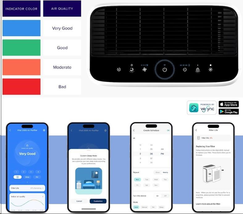 Chcete mať doma čistý vzduch ako prevenciu pred ochorením horných dýchacích ciest alebo ste alergik či astmatik? Chytrá čistička Levoit Vital 100S vďaka vysoko kvalitnej 3-vrstvovej filtrácii s filtrom HEPA H13 a omývateľným predfiltrom odstráni až 99,97 % škodlivých látok a nečistôt, ktoré by ste inak dýchali. Čistička Levoit Vital 100S je certifikovaná pre alergikov a disponuje výkonom 243 m3/h CAD pri 32W. Vďaka energeticky nenáročnému prevádzke získala ocenenie Energy Star. Ovládanie čističky vzduchu je skutočne jednoduché priamo na displeji alebo je možné ovládanie cez aplikáciu na chytrých zariadeniach Android alebo Apple (iOS). Levoit Vital 100S je vybavená senzorom snímania kvality vzduchu, na základe ktorého sama chytro upravuje výkon čistenia.