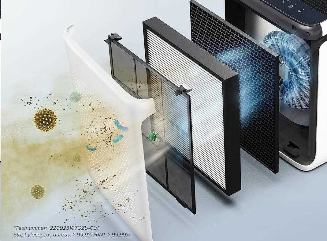 Druhou vrstvou je H13 True HEPA filter s technológiou HEPASmart™. Vylepšený staticky nabitými vláknami, ktoré zachytia najmenej 99,99 % častíc prenášaných vzduchom o veľkosti 0,3 mikrónu, ako je jemný prach, častice dymu, pleseň, baktérie, peľ, dymové častice, roztoče, a zvieraciu srsť. To odlišuje Levoit od konkurencie, pretože filter HEPA H13 je oveľa kvalitnejší a spoľahlivejší ako bežne používané filtre. Nezávislé testovanie čističky Levoit Vital 200S PRO 220923107GZU-001.