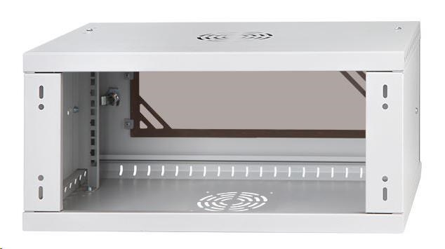 LEXI-Net 19" nástěnný rozvaděč Basic 4U 520x450, skleněné dveře, bez zad, rozložený, šedý
