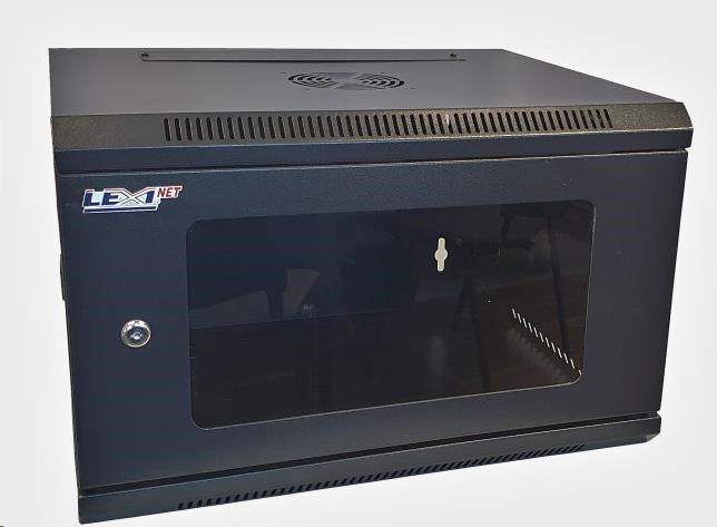 LEXI-Net 19" nástěnný rozvaděč 9U 600x450, nosnost 60 kg, skleněné dveře, rozložený, černý