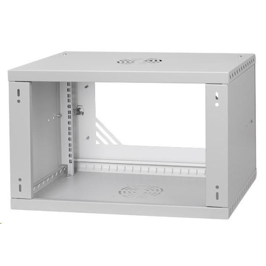 LEXI-Net 19" nástěnný rozvaděč Basic 6U 520x450, skleněné dveře, bez zad, rozložený, šedý