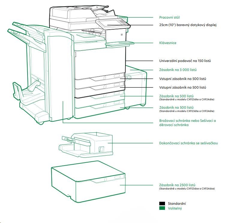 Farebná tlačiareň LEXMARK CX922de, A3, 45 str./min, 2048 MB, farebný LCD displej, DADF, USB 2.0, LAN