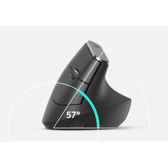 Jedinečný 57° vertikálny uhol modelu MX Vertical znižuje tlak na zápästie, zatiaľ čo palec je pohodlne umiestnený na opierke pre palec.