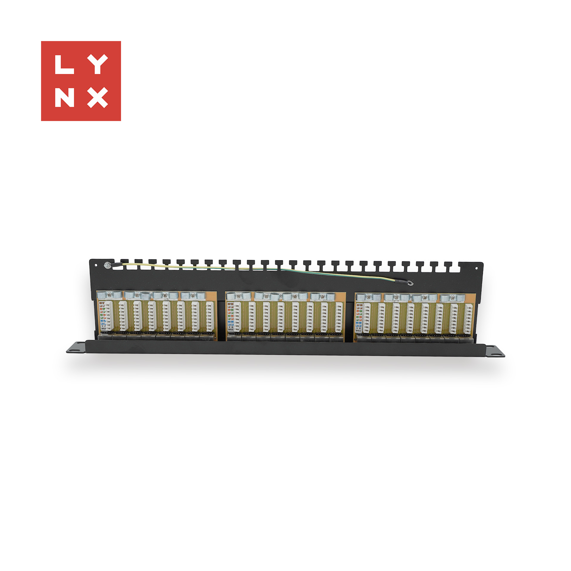 LYNX 19" patch panel 24-port, STP Cat6a, 50µ, stíněný, černý