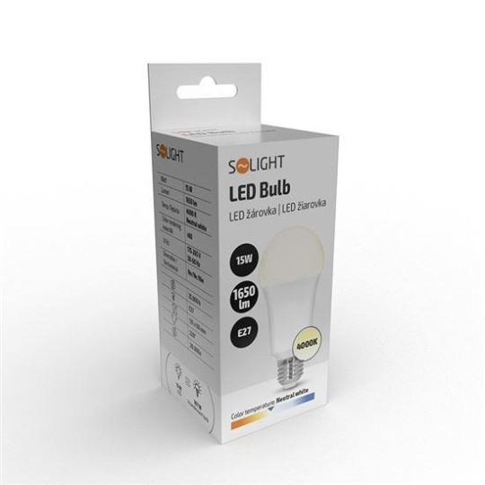 Solight LED žárovka, klasický tvar, 15W, E27, 4000K, 220°, 1650lm