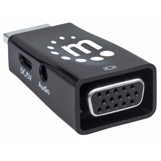 Adaptér Manhattan HDMI na VGA, mikrokonvertor, HDMI samec na VGA samica, audio, čierny