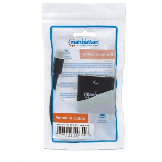 Adaptéry Manhattan Active Mini DisplayPort na DVI-I umožňujú rýchle a pohodlné pripojenie medzi zdrojom médií vybaveným rozhraním Mini DisplayPort a zobrazovacím káblom DVI. Tento aktívny adaptér prekonáva obmedzenia video/grafickej karty bez DP++ (dual-mode) a konvertuje signál na zobrazenie. Je ideálny pre hry na viacerých obrazovkách, digitálne nápisy v maloobchodných displejoch, finančný trh a ďalšie aplikácie. Poniklované kontakty a úplné tienenie pomáhajú adaptérom Manhattan Active Mini DisplayPort na DVI zabezpečiť čistý a stabilný prenos videa v multimediálnych aplikáciách UHD, v domácnostiach a kanceláriách. Odolné PVC plášte a tvarované topánky s odľahčením ťahu pomáhajú zabezpečiť, aby pripojenia zostali neprerušované a stabilné.