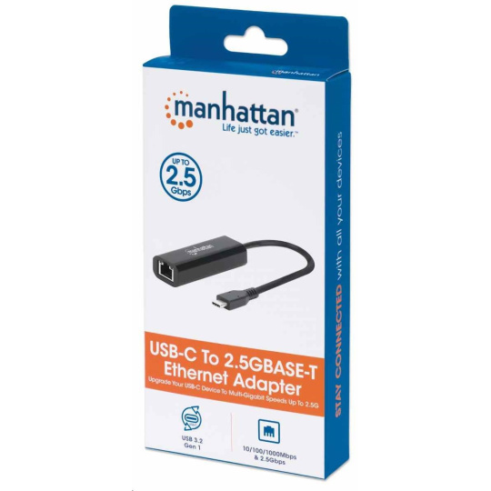 Adaptér Manhattan USB-C na 2.ethernet 5GBASE-T, USB 3.2 Gen 1; 10/100/1000 Mbps & 2.5 Gb/s, čierna