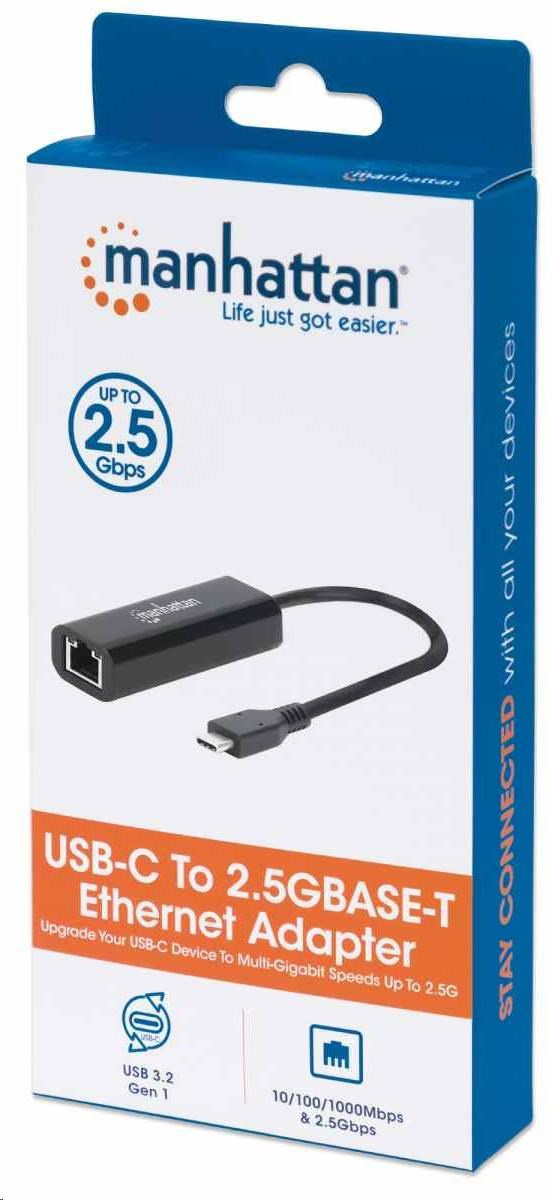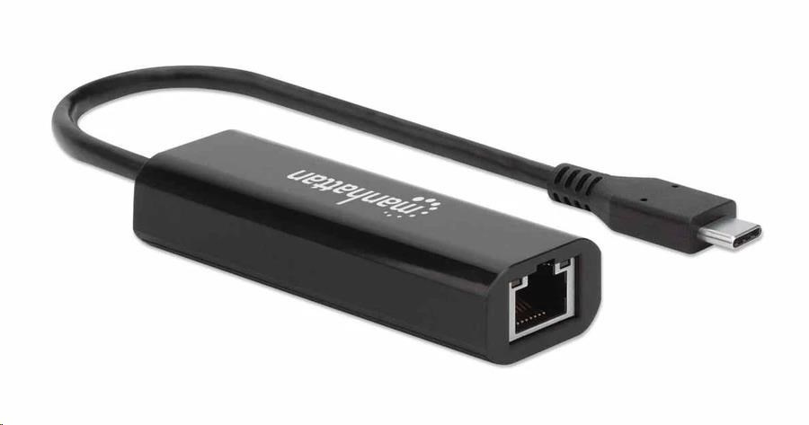 Adaptér Manhattan USB-C na 2.ethernet 5GBASE-T, USB 3.2 Gen 1; 10/100/1000 Mbps & 2.5 Gb/s, čierna
