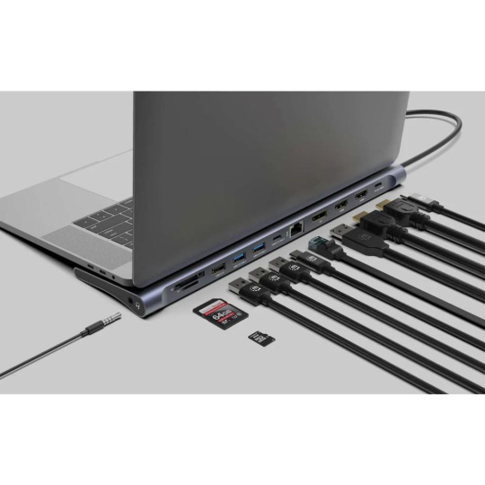 Rozšírte možnosti pripojenia svojho zariadenia pomocou multiportového Adaptéra Manhattan 12 v 1. Táto všestranná dockovacia stanica vyplní medzery vo vašom notebooku alebo MacBooku a ponúkne základné pripojenia, ako je HDMI, DisplayPort, Power Delivery, Ethernet, čítačka kariet, audio a USB porty.