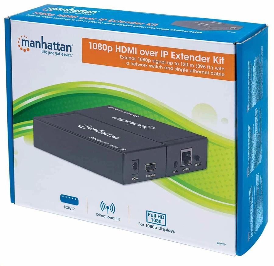 Manhattan HDMI Splitter, predlžuje signál 1080p až na 120 m pomocou sieťového prepínača a jedného ethernetového kábla, čierny