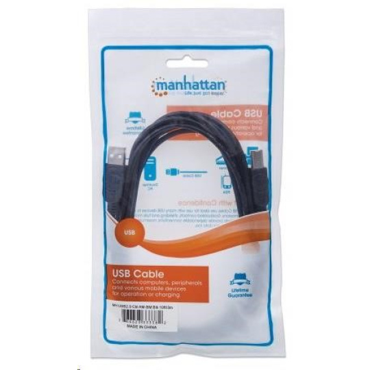 MANHATTAN vysokorýchlostný kábel USB pre zariadenia, samec typu A na samec typu B, 0,5 m, čierny