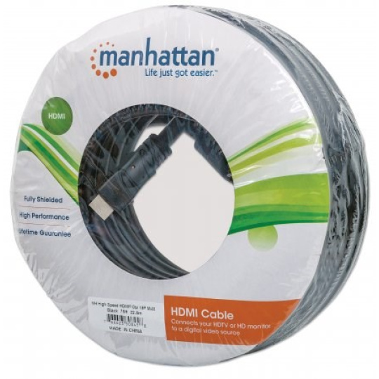MANHATTAN Vysokorýchlostný kábel HDMI 3D, samec - samec, tienený, čierny, 20 m (22.5m)