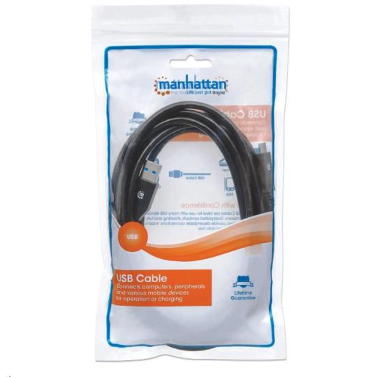 Káble Manhattan SuperSpeed USB typu C umožňujú jednoduché pripojenie periférnych zariadení a príslušenstva USB typu A k portom zariadení typu C. Tieto káble sú ideálne na použitie s akýmkoľvek zariadením USB typu A typu plug-and-play a podporujú prenos dát rýchlosťou až 5 Gb/s v systémoch Windows a Mac pre rýchle a spoľahlivé prenosy a prúd až do 3 A. Poniklované kontakty, tienenie a plne tvarované pätky s odľahčením ťahu zabezpečujú spoľahlivé pripojenie, maximálnu vodivosť a minimálnu stratu dát pri zníženom rušení EMI.