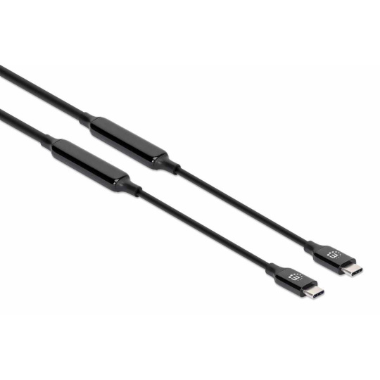 MANHATTAN Kabel USB-C Male to Male, USB 3.2 Gen 2 Type-C Active Device Cable, 3m, pozlacené koncovky, černá