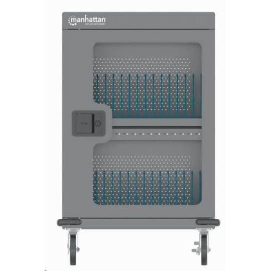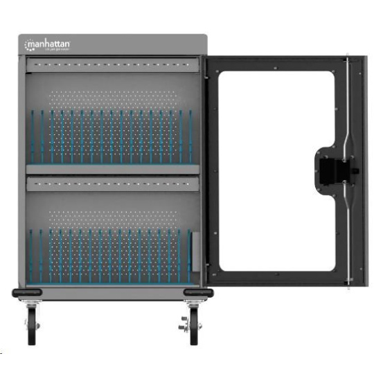 MANHATTAN nabíjací vozík - 32 portov, 576 W, prepäťová ochrana, tiché vetranie, kovový kryt, čierna farba