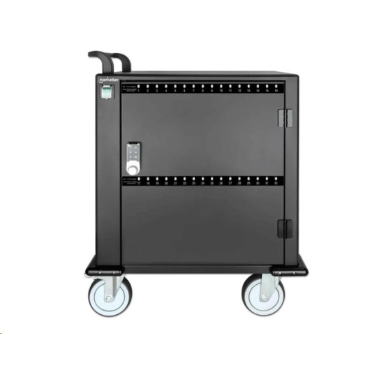 MANHATTAN nabíjací vozík - 32 portov, 576 W, prepäťová ochrana, tiché vetranie, kovový kryt, čierna farba