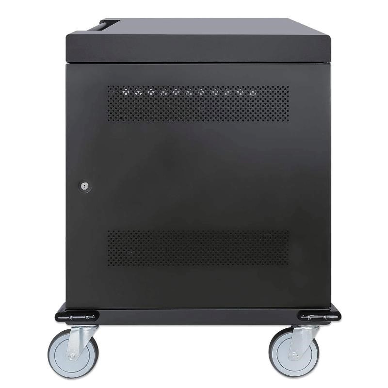 Pevný a odolný oceľový kryt tohto nabíjacieho vozíka ponúka viditeľnú známku profesionálneho riadenia a ochrany zariadení. Zámok na predných a zadných dverách je možné otvoriť štvorciferným kódom alebo dvomi priloženými kľúčmi, ktoré pomáhajú udržať zariadenia v bezpečí počas nabíjania alebo keď nie sú používané. Zahrnuté robustné kolieska vám umožnia premiestniť vozík, kam potrebujete; zámky kolies umožňujú rýchle zabezpečenie na mieste.