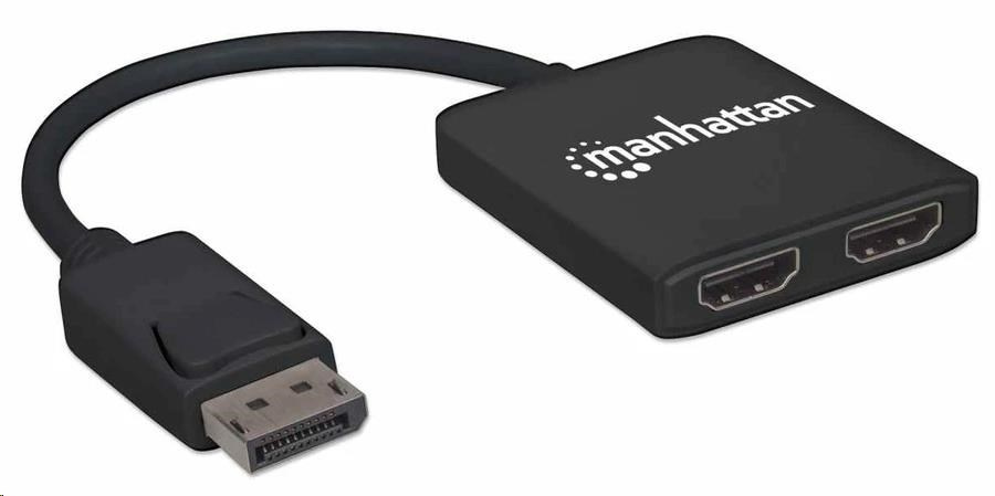 Manhattan Hub, MST hub DisplayPort na duálny HDMI (M/F), čierny