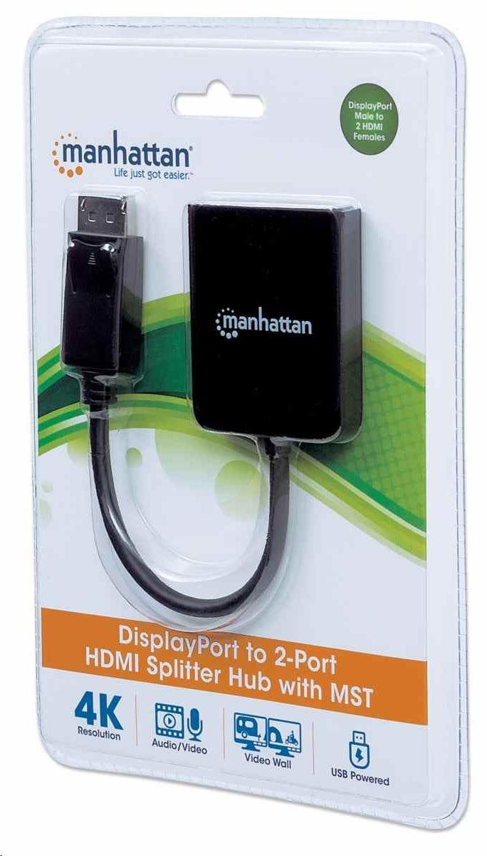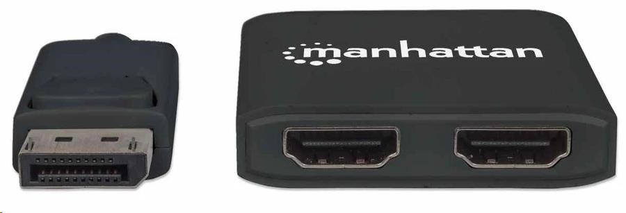 Rozbočovač Manhattan DisplayPort na duálny HDMI - MST prenáša signál 4K DisplayPort (DP) z jedného zdroja UHD až na dva displeje UHD HDMI.