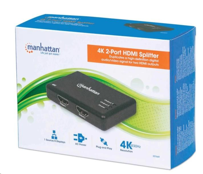 MANHATTAN Splitter HDMI 2 porty, 4K@30Hz, čierny
