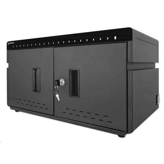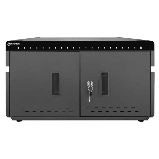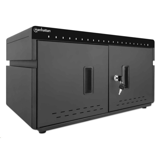 Stolná nabíjacia skrinka MANHATTAN - 20 portov, 360 W, prepäťová ochrana, tiché vetranie, kovový kryt, čierna