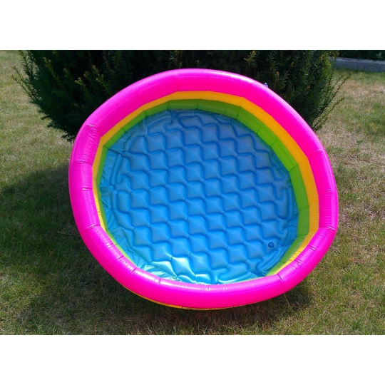 Baby bazén sa skladá zo troch samostatne nafukovacích prstencov. Podlaha z mäkčeného PVC zabraňuje odieraniu a pôsobí protisklzovo. Bazén je možné umiestniť kdekoľvek, kde bude vyhovovať najmenším plavcom aj ich rodičom. Je vhodné pod bazén dokúpiť ochrannú podložku.