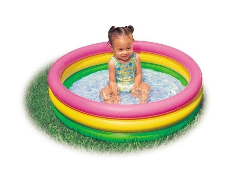 Baby bazén sa skladá zo troch samostatne nafukovacích prstencov. Podlaha z mäkčeného PVC zabraňuje odieraniu a pôsobí protisklzovo. Bazén je možné umiestniť kdekoľvek, kde bude vyhovovať najmenším plavcom aj ich rodičom. Je vhodné pod bazén dokúpiť ochrannú podložku.