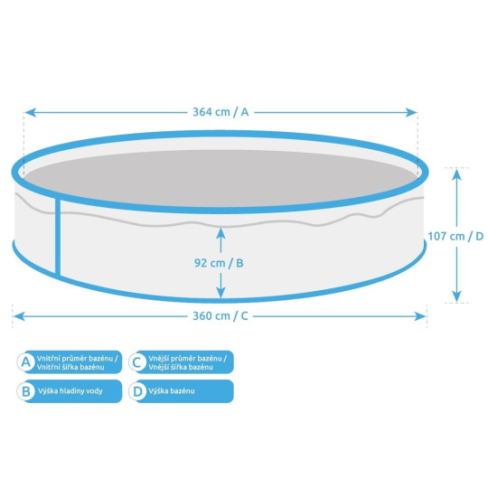 Zadané rozmery bazéna sú iba orientačné a ovplyvniť ich môže rovnosť podkladu či objem napustenej vody. Povolená výrobná odchýlka je 5 %.