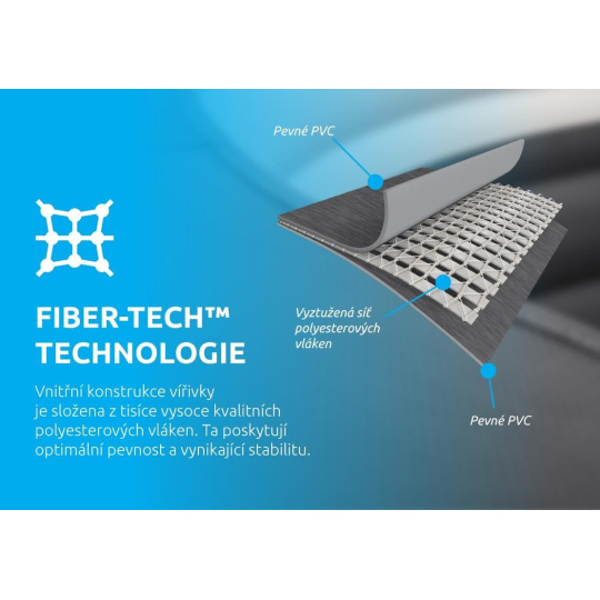 vana je vyrobená z vysoko kvalitného 3 vrstvového PVC. Disponuje konštrukciou 48 FIBER-TECH BEAMS (silné polyesterové vlákna).