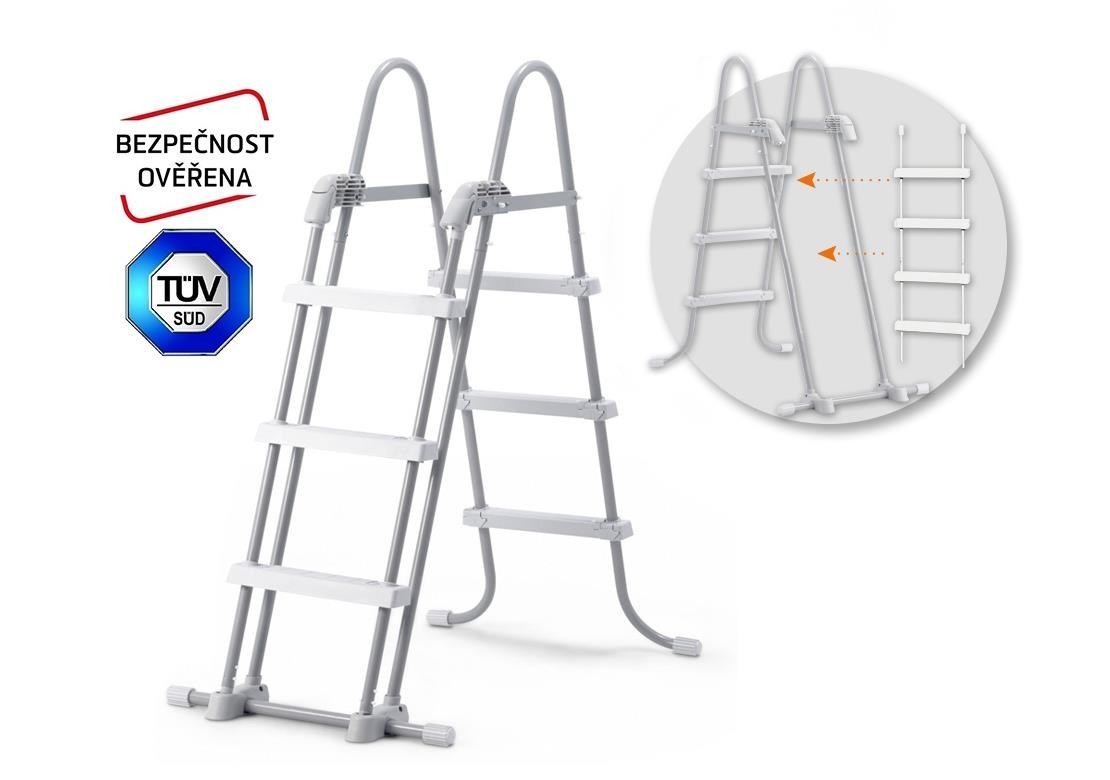 Schodíky majú odnímateľné stupienky - pri ich vybratí zabránite nekontrolovateľnému vstupu detí do bazéna. Maximálna nosnosť 136 kg.