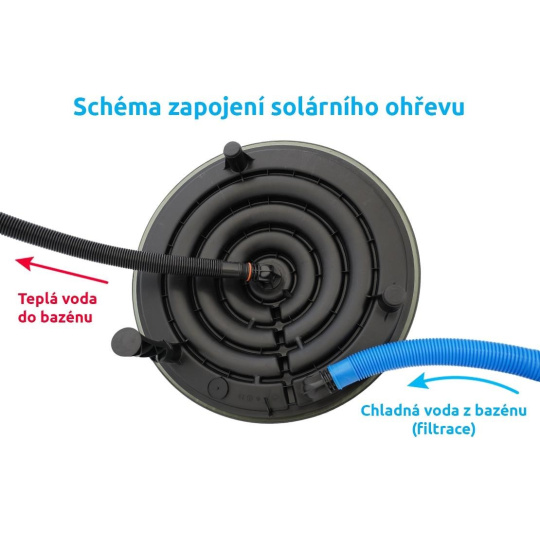 Súčasťou balenia je solárny ohrev, vrchný plastový kryt a trny na pripojenie 32 a 38 mm hadíc.