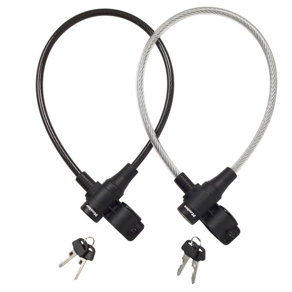 Oceľové krútené lanko na kľúč s dĺžkou 65cm a priemerom 8mm má vinylové potiahnutie, ktoré zabraňuje poškriabaniu. Obsahuje integrovaný zabezpečovací mechanizmus s valcovým kľúčom, súčasťou balenia sú 2ks kľúčov a montážna konzola pre jednoduchú prepravu.