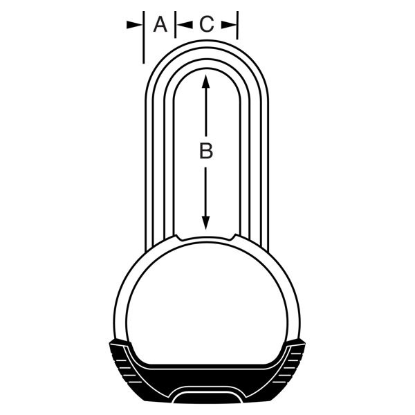 - Visiaci zámok s šírkou 64 mm s telom z pochromovaného zinkového odliatku vysoko odolným voči korózii.
