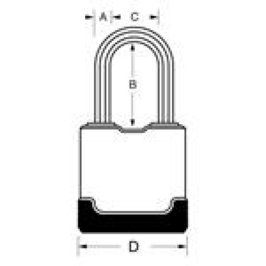 - Visací zámok šírky 48 mm s telom z laminovanej ocele s povrchovou úpravou odolnou voči poveternostným vplyvom.