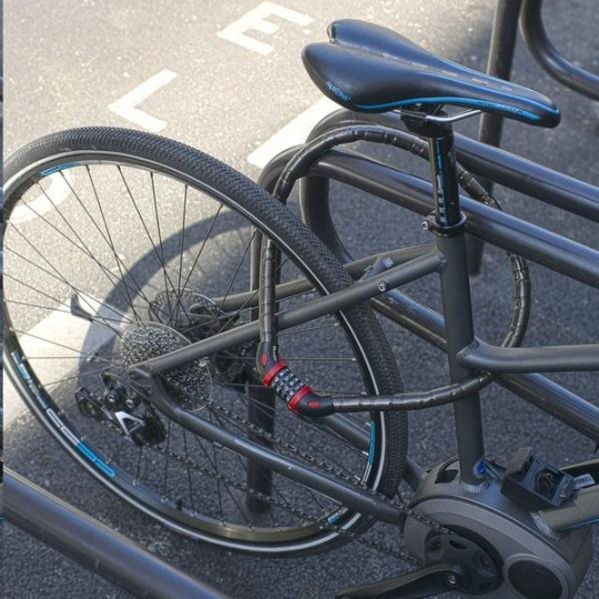 Masívne kombinačné lanko s priemerom 18 mm a dĺžkou 1m má dymovo čierny vinylový poťah, ktorý zabraňuje poškrabaniu. Obsahuje integrovaný nastavitelný 4-ciferný kombinovaný zámok.